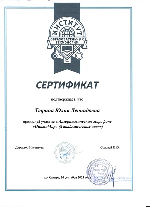 - «Алгоритмический марафон «ПиктоМир», 2023 г.
