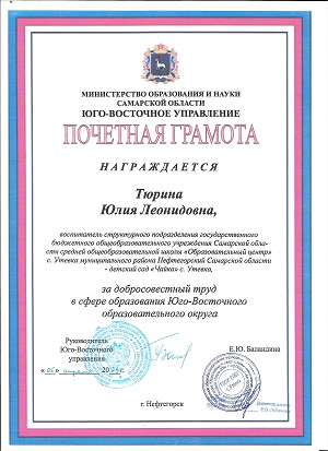 Образование: среднее профессиональное, государственное бюджетное профессиональное образовательное учреждение Самарской области «Самарский социально-педагогический колледж» г.о. Самара; Дошкольное образование, Воспитатель детей дошкольного возраста