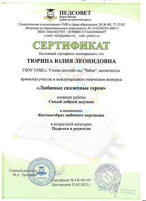 - Всероссийский профессиональный педагогический конкурс в номинации для воспитателей «9 мая – День Победы», посвященный 77-й годовщине Победы в Великой Отечественной войне, Окна Победы, 11.05.2022, Диплом, 1 место