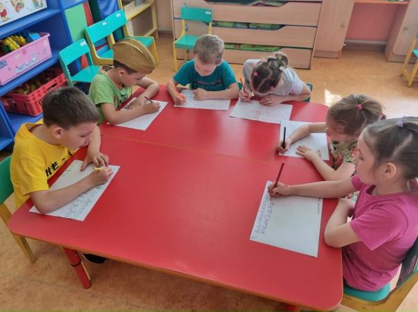С детьми проводились беседы: «День Победы», «Георгиевская лента – символ Дня Победы», «Военная техника, рода войск», «Правнуки Победы», «Животные - герои», «Дети и война». Так же ребята рассматривали иллюстрации, альбомы, открытки военной тематики, презентации, разучивали стихи и слушали военные песни, с гордостью рассказывали о своих прадедах - участниках ВОВ. Были проведены занятия на данную тему, познавательного, социально-коммуникативного и художественно-творческого содержания.